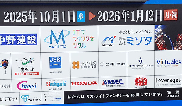 サガ・ライトファンタジーは、晩秋から年明け頃にかけて、佐賀の風物詩として多くの人々に親しまれているイルミネーションイベントです。